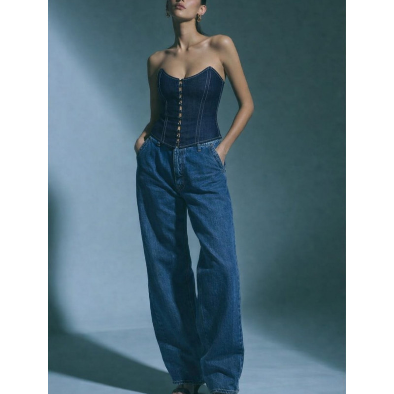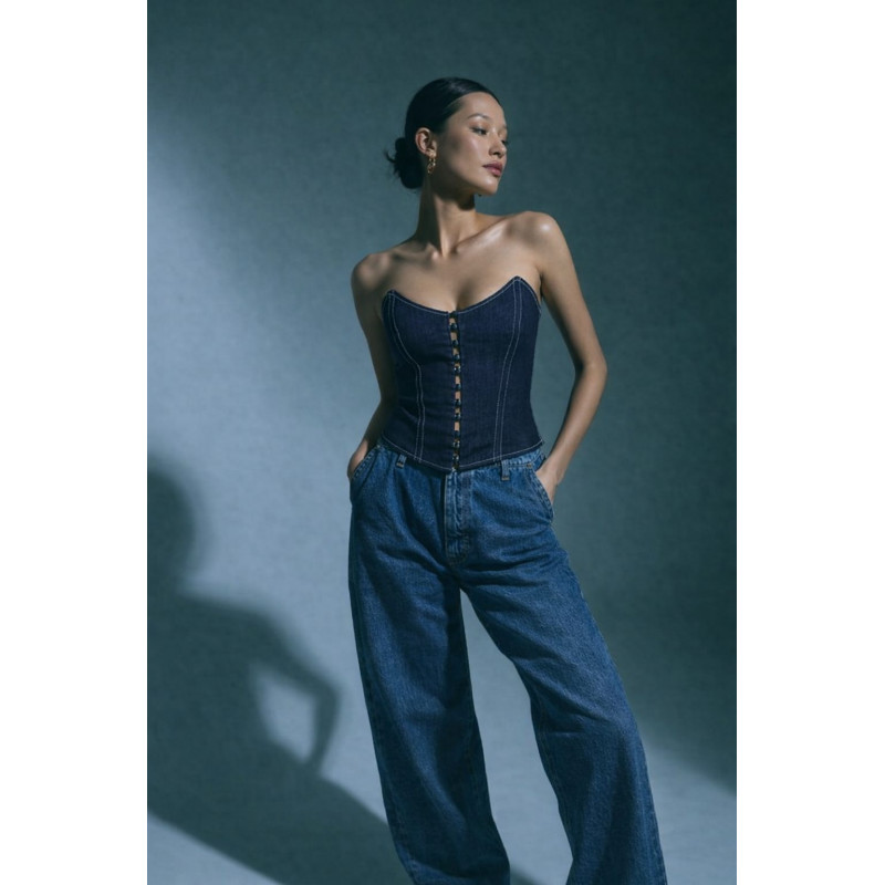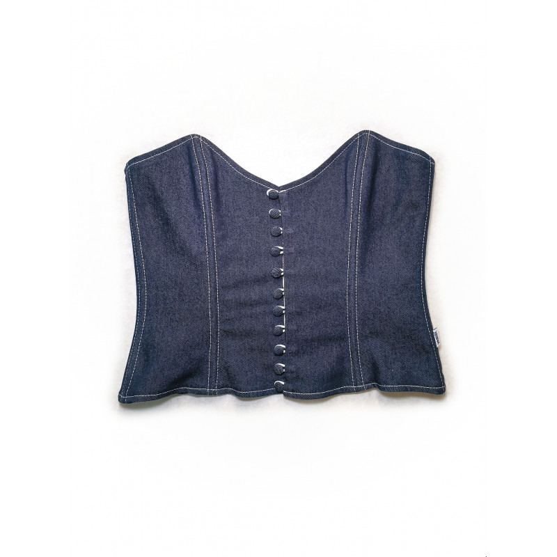 Elegant and feminine, the Sixtine Corset enhances the silhouette with a delicately cinched waist and a double closure system: covered buttons at the front and adjustable lacing at the back for a perfect fit.